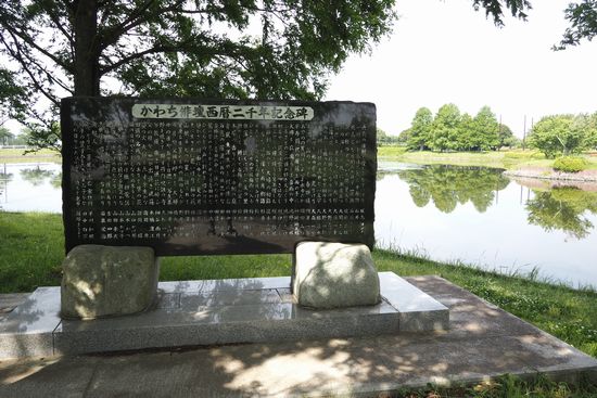 再び国道408を越えて南下し、水と緑のふれあい公園に来ました。池のほとりに立派な石碑がありました。