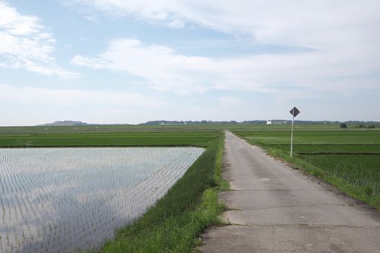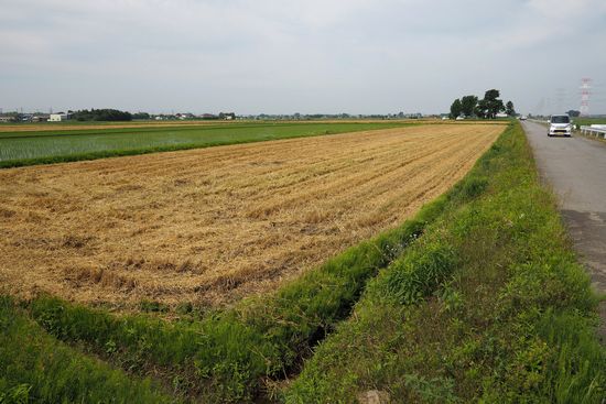 最後は、土手と並行した農道を西に向かいます。このあたりは水田だけでなく、所々で麦畑を見る