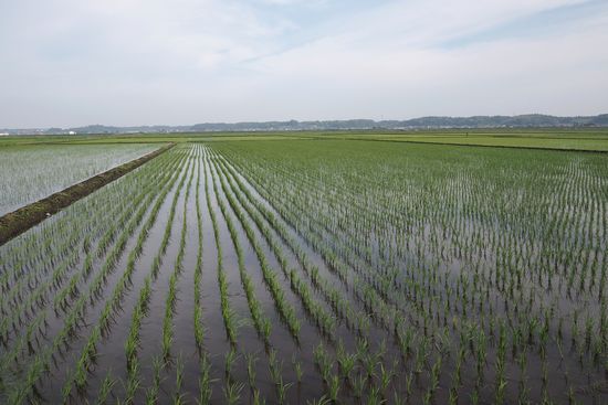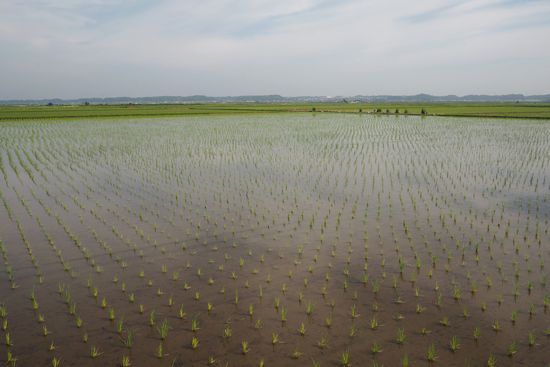 見はるかす 河内の水田 涯もなく 皐月の空に 稲の香の満つ