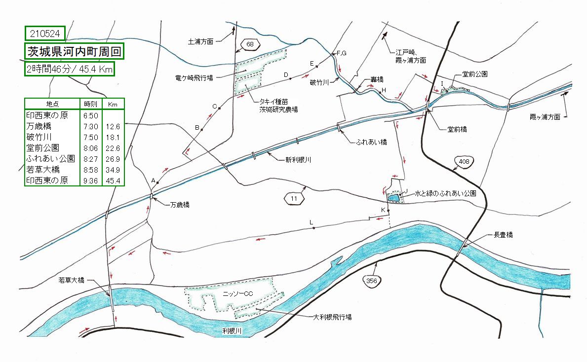 国道408号を渡り、堂前公園に来ました。ここは河内町ではなく、稲敷市になります。地点I。
