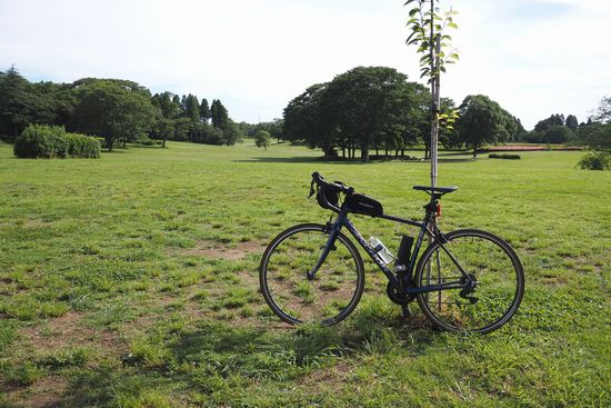 広大な昭和の森に入りました。真っ先にしたことは、水道を見つけて自転車の洗車。泥はねを流し
