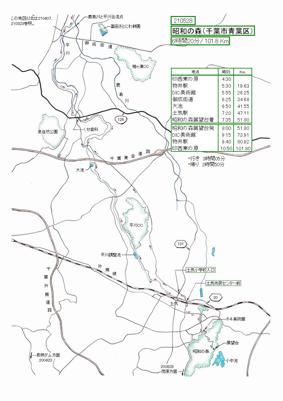 なお、前日の雨で路面が濡れていて、泥はねでかなり汚れました。帰りは、土気から国道126まで、平川CC東側の空いた