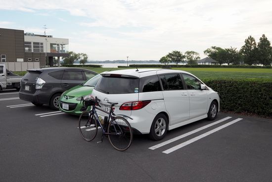 走行距離が150Kmを超えてしまうので、車で霞ケ浦総合公園まで行き、そこから往復することにしました。広々とした風景の中で、
