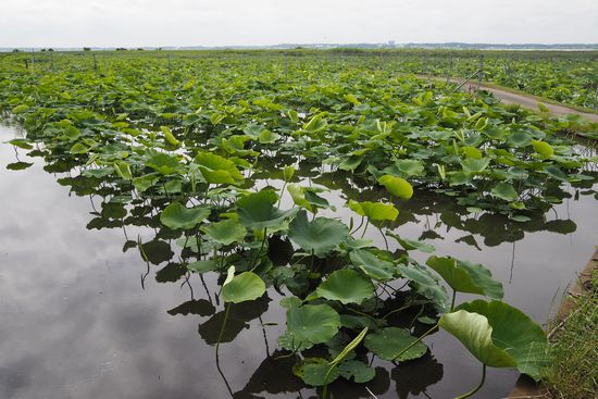 の上から眺めるだけだった蓮田を、手の届く至近距離から撮影できました。