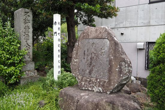 小林一茶の句碑。 赤門やおめずおくせず時鳥(ほほとぎす)