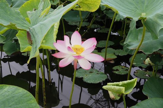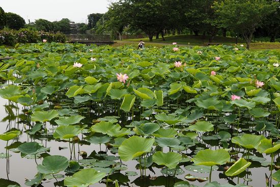親水公園に着きました。古代蓮は、満開には程遠いですが、そこそこ咲いていたので、良しとしましょう。