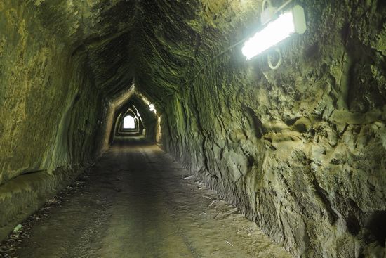 トンネル断面が将棋の駒状の五角形をしています。これを観音掘り、と呼ぶそうです。この後、柿木台