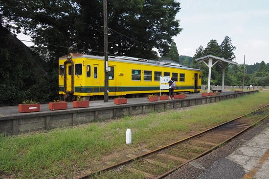 大原駅のいすみ鉄道の車両です。この車両が桜と菜の花の中を走る春が、ここを訪れるベストシーズン