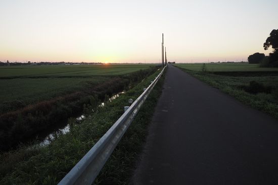 暑さ対策として、未明に出発します。若草大橋を渡り、河内町役場近くを走行中に日の出です。