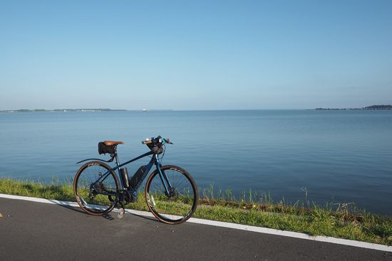 の霞ケ浦です。なお、前回の房総半島横断で脚がつった精神的後遺症のため、今回はE-Bikeで来て