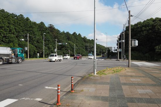 防災道路を抜けると下津入口交差点です。この写真の右側に進むと下津の海岸です。