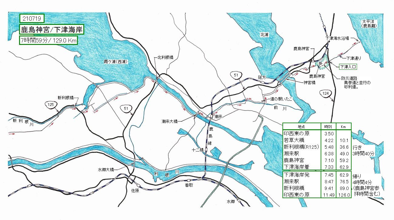 潮来、鹿島を目指すのであれば、通常は、利根川沿い、或いは新利根川沿いにルートを採るのが