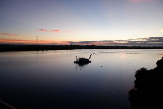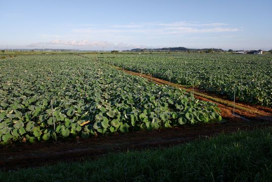新利根川の河口水門を過ぎると、左側に、浮田の蓮田が広がります。