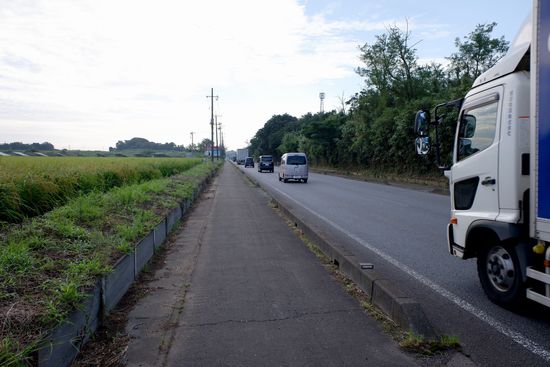 土手の道から県道260号を横切り、神栖外環道に出ます。これを道なりで、海沿いの道の一本手前