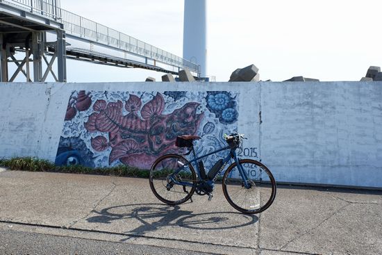 神栖市の海沿いの直線道路に、長い(6Kmとか)防波壁があります。その壁に、市が公募して、絵を描かせたのが