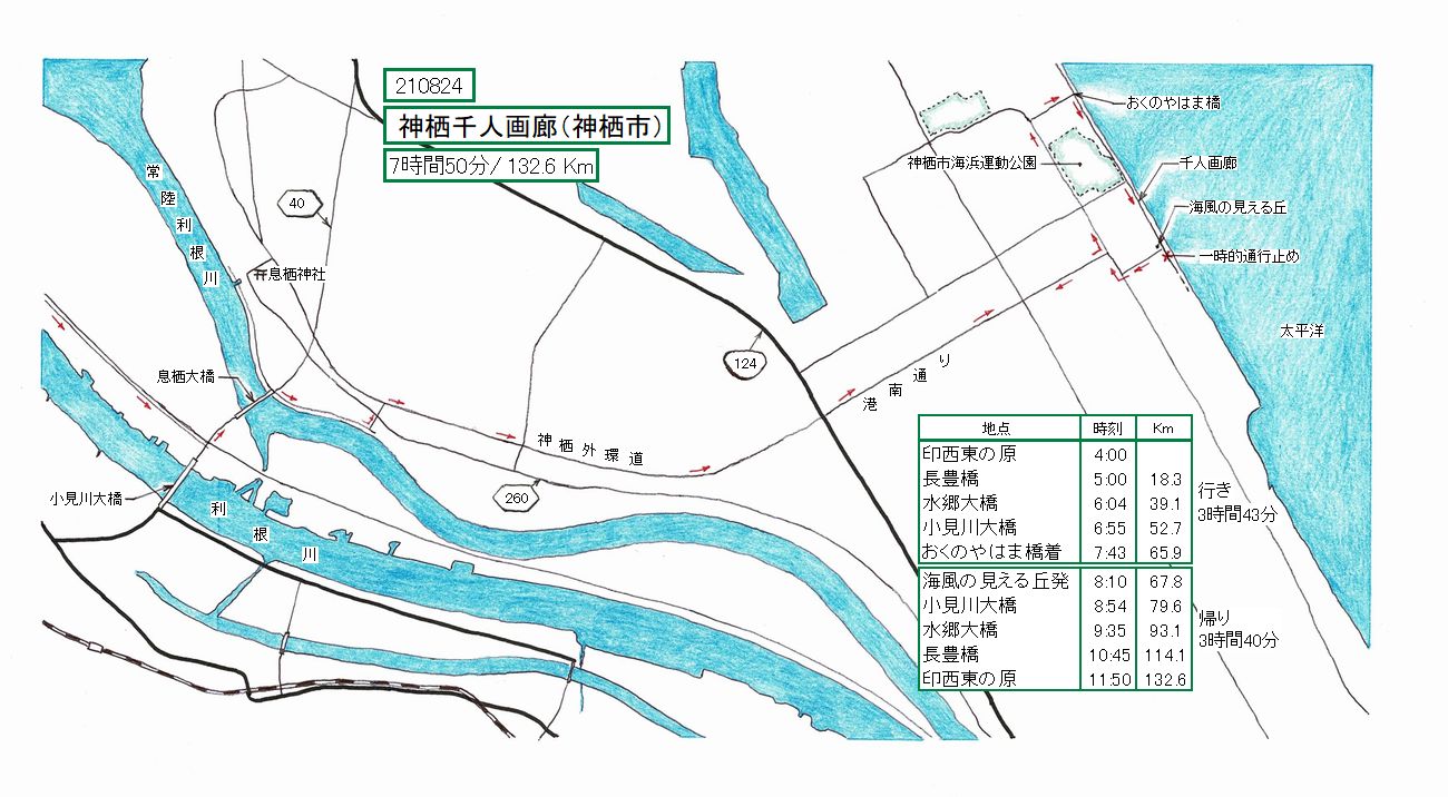 千人画廊です。通行止めの区間があり、今回眺めたのは、全体の半分くらいかと思いますが、鹿島灘と岸辺に林立