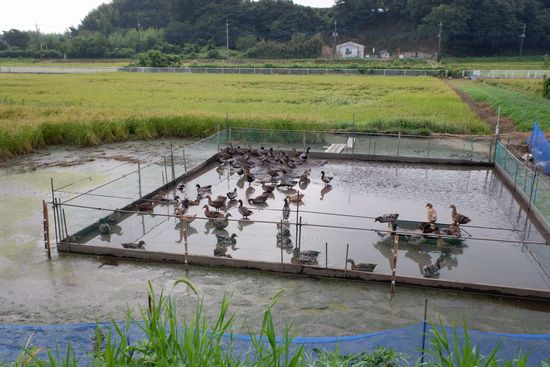 途中、合鴨の飼育場?がありました。