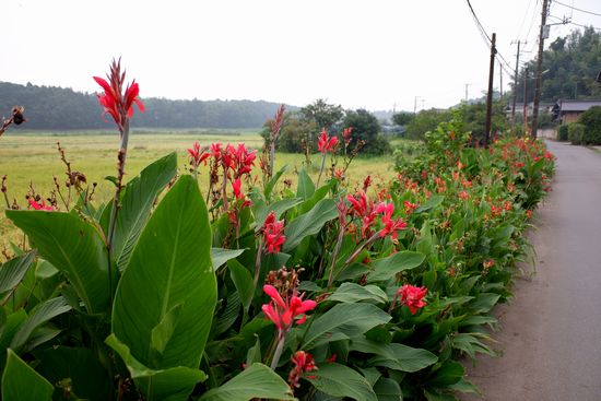 稲の実りの季節。そこここにカンナが咲いています。