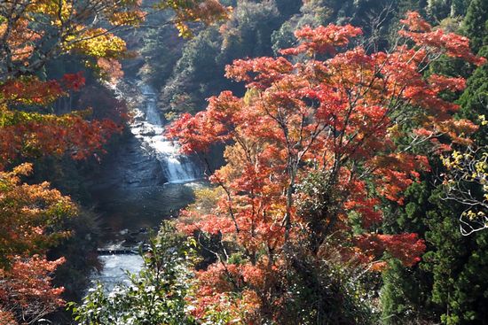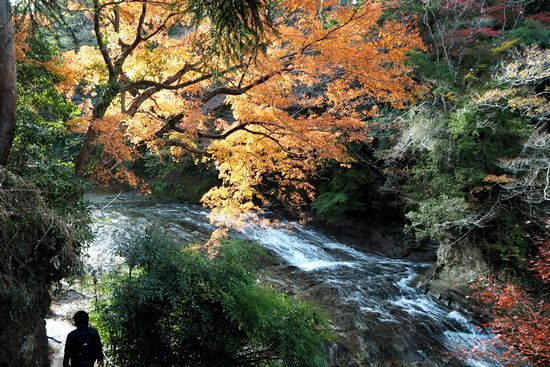 もみじ越し 深き渓谷 見下ろせば 朝日に煌めく 粟又の滝