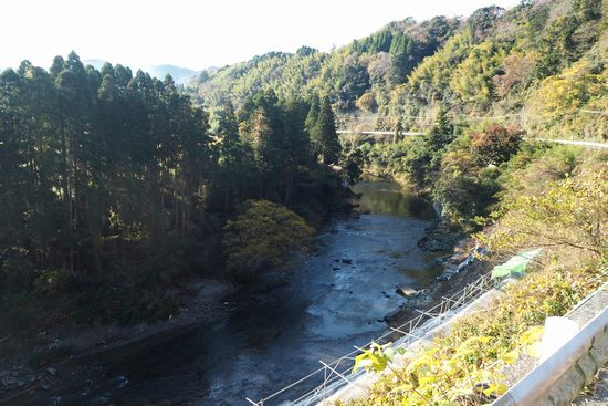 大多喜駅前の家並を抜けて、夷隅川を三口橋で渡ります。橋の上から、夷隅川といすみ鉄道の
