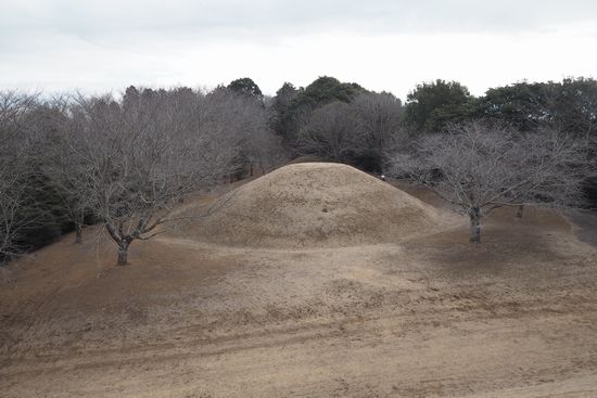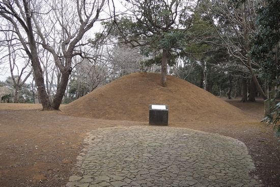 長い階段を登って古墳のある広場に出ました。これは富士見塚古墳です。全長78mの前方後円墳