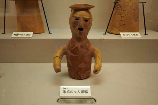 同じく富士見塚古墳から出土した朱衣の女人埴輪です。もの悲し気な表情に見えます。
