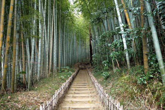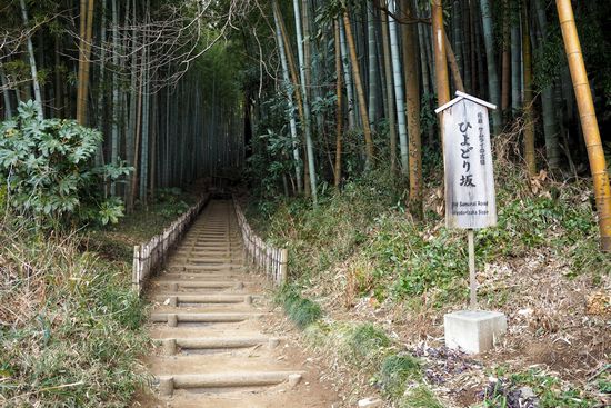 ひよどり坂の両側はきれいな竹林です。十分な手入れがされているんでしょうね。小袖をまとった