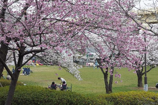 帰途、再び成田駅を通過しますが、これは市役所通りから見た栗山公園。桜が満開です。
