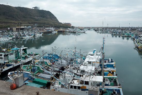 飯岡漁港に着きました、沢山の漁船が係留されています。
