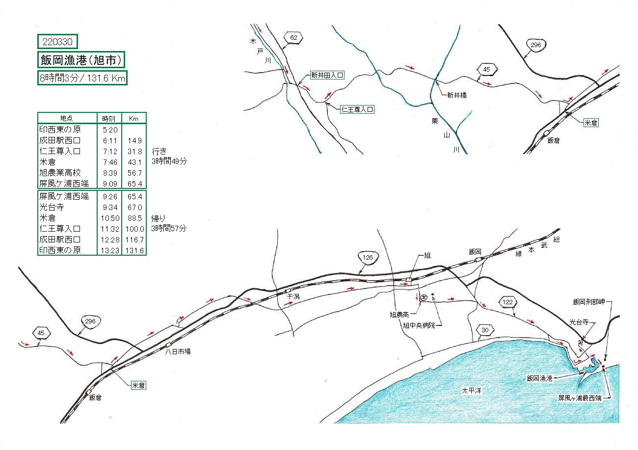 かつて171018で飯岡刑部岬に行ったことがあります。かなりきつかった思い出があります。今回は岬に立つことが目的ではなく、