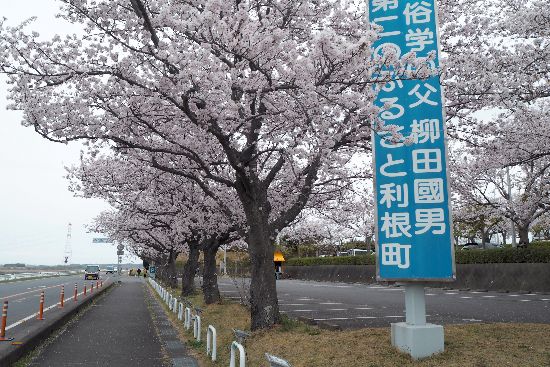 印西から利根川を栄橋で渡り、ここは利根町役場前の桜並木です。