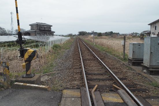 県道4号を越えた先で、竜ケ崎線の踏切を渡ります。