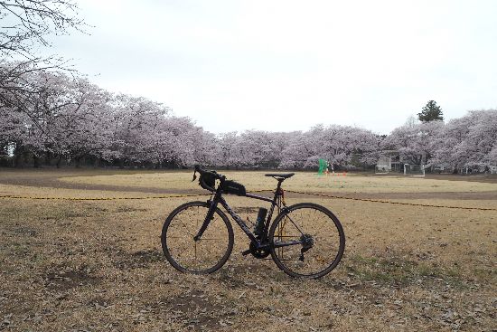 直前で、暗くて桜がくすんで見える。Aグラウンドの草が枯葉色で、桜の色を引き立てない。B青