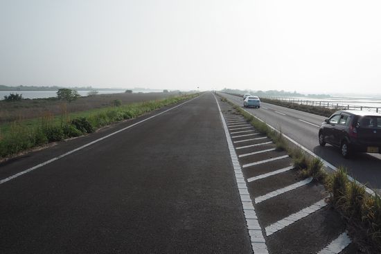 神崎大橋から下流に、サイクリングロードの幅が、やたらと広い部分があります。隣を走っている