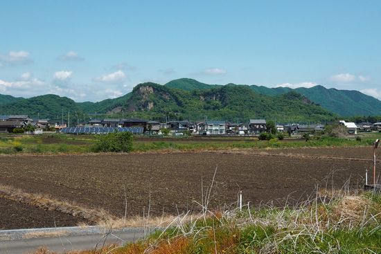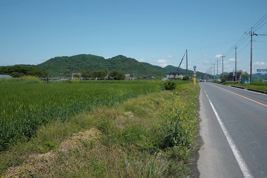 国道から岩の露出した急峻な山が見えます。あれが岩舟山なんでしょう。
