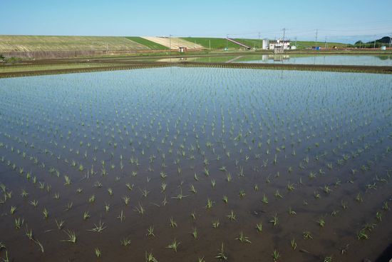 土手を降ろされて良いことは、田んぼを真近に眺められることでしょう。