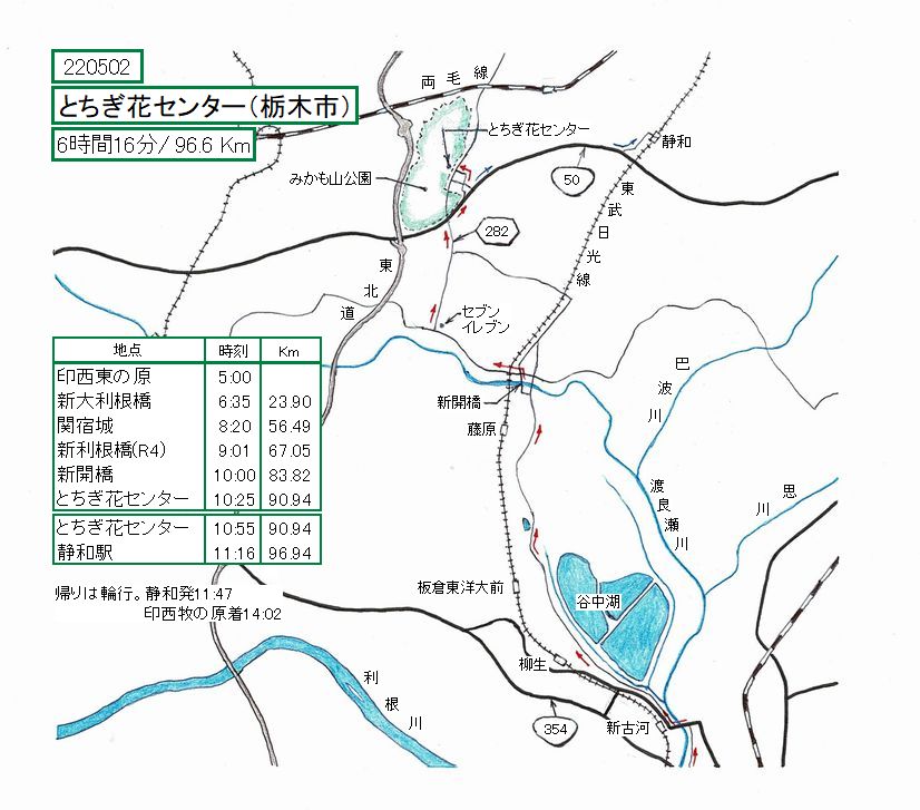 帰りは国道50号で、東武日光線の静和駅を目指します。
