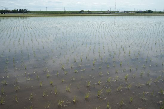 田植えが終わったばかりの水田。(地図B地点)