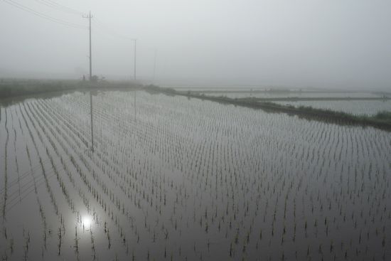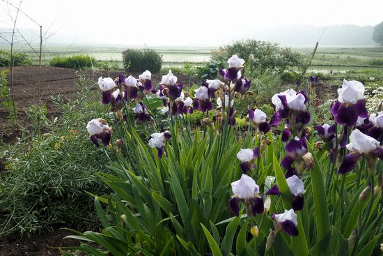 物井駅を過ぎ、四街道市グリーンセンターを過ぎたあたり。まだ霧は消えません。アイリスが