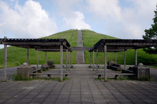 円錐形。牧の原の方は、前方後円墳を模した形をしています。