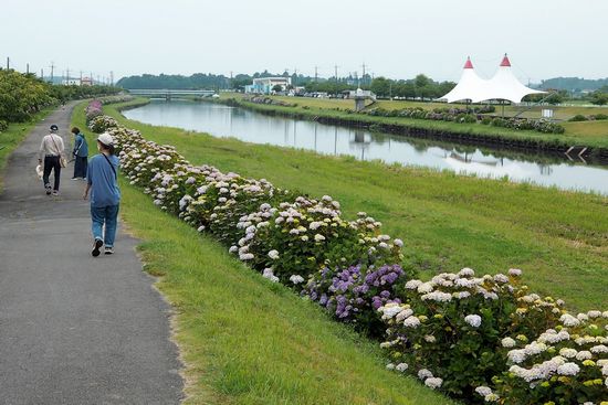 再び栗山川に降りてきました。あじさい公園は川の岸辺にあじさいが植えられています。