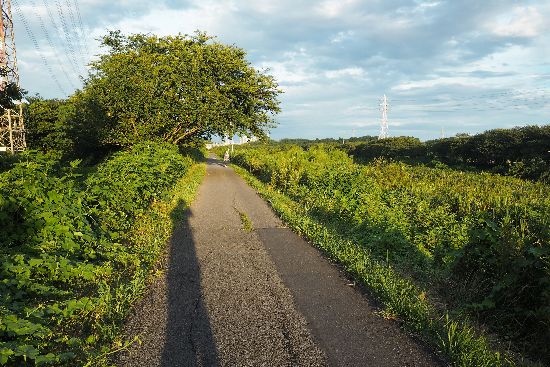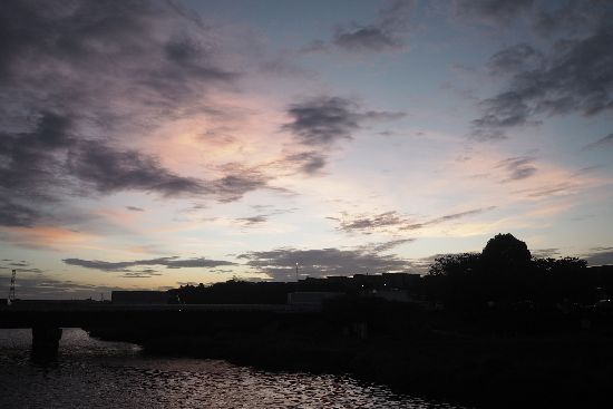 酷暑対策で早朝出発。やちよ道の駅からの朝焼けの空。実際はもっと明るいのですが、カメラ