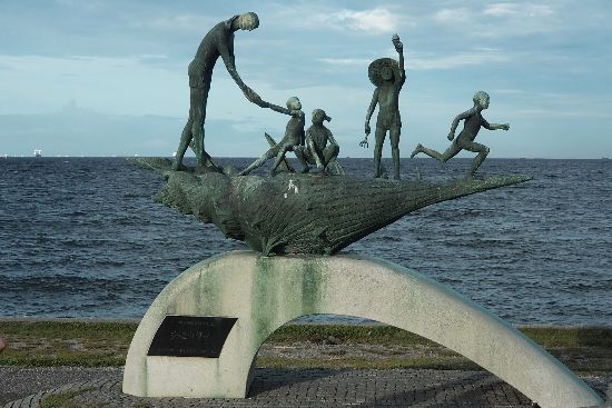 検見川浜の中程にモニュメントがあります。昭和63年に設置された「浜辺の情景」という作品です。