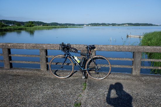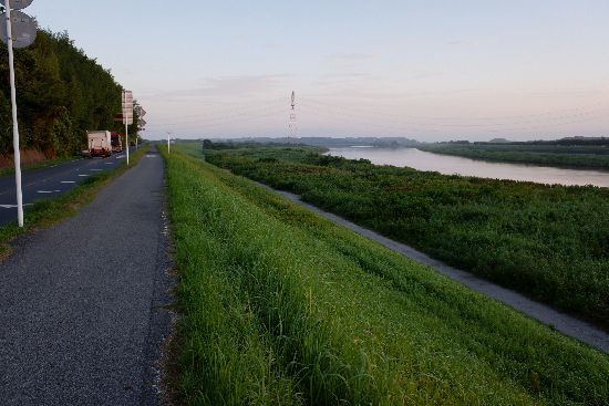 利根川の「海から77Km」地点に出ました。関枠橋、布佐駅経由です。これから土手のCRを