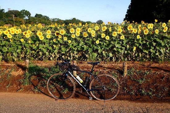 のひまわりは、まだ元気に咲いていました。でも8月には刈り取りです。次はコスモスが順番を