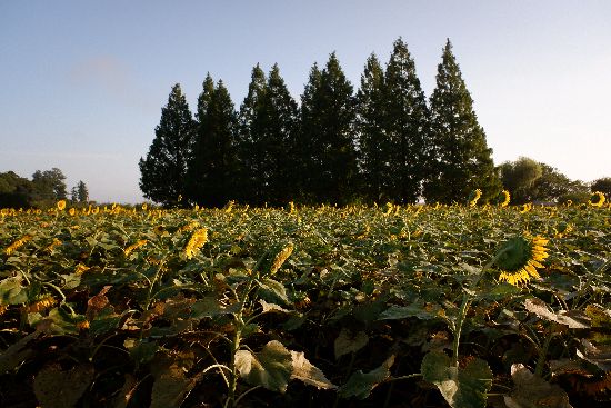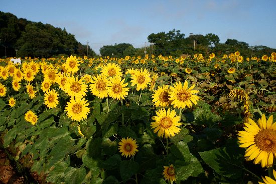 田中調整池の土手を越すと、程なくあけぼの山農業公園に着きました。ひまわり畑の外縁部