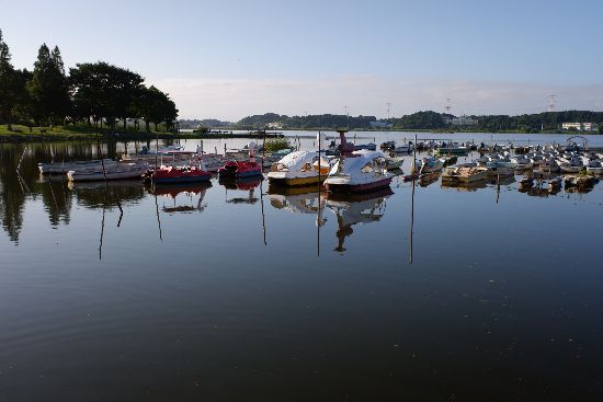 帰りは手賀沼(北岸)を通りました。手賀沼公園のボート乗り場。