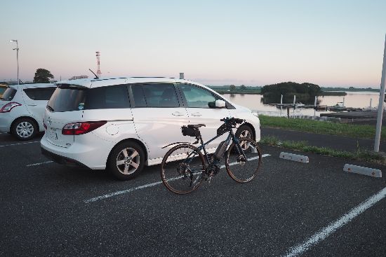 時は、帰りは輪行しました。そこで考えました。中間点の道の駅/水の郷さわらから出発すれば、自走で往復できるし、更にe-Bikeも使えると。