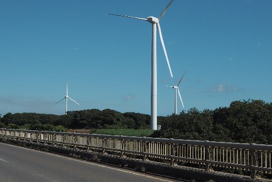 標高はけっこう高くて、50m程度あります。なので、風当りも強いんでしょう。あちこちに発電