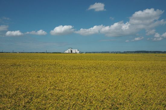 感動的に広々とした稲田が続きます。この先、東総台地の幅が2キロ程に狭まったところを